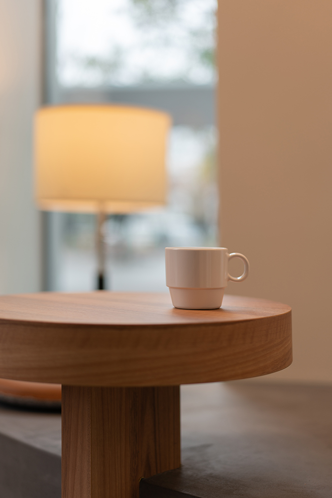この空間を特徴づけている既存のスリットの窓から発想し、スリットのピッチに合わせた形や高さが違うこの空間ならではのテーブルとベンチを設えた。姿勢や目線の違う様々な席は、空間に楽しさを生み出し、新たなコミュニケーションを促す装置となる。