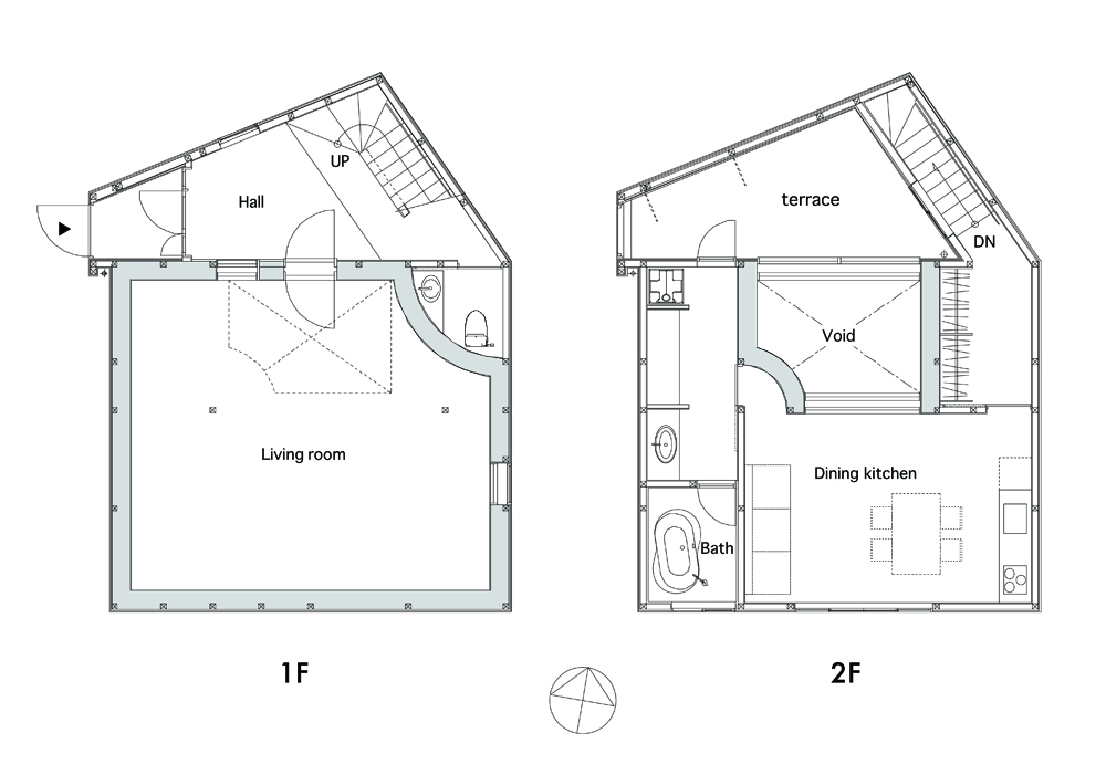 建物はその敷地形状に呼応し、五角形の平面としている。