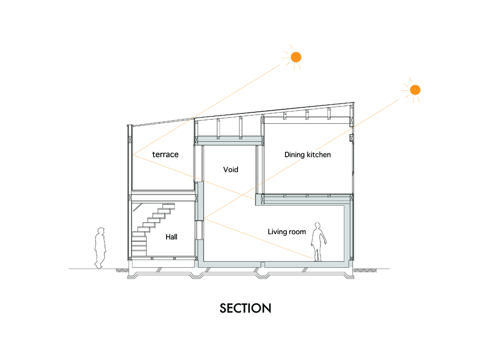 しかし本計画では、あくまで「リビングルーム」であることを重視し、自然採光を絶対条件とした。