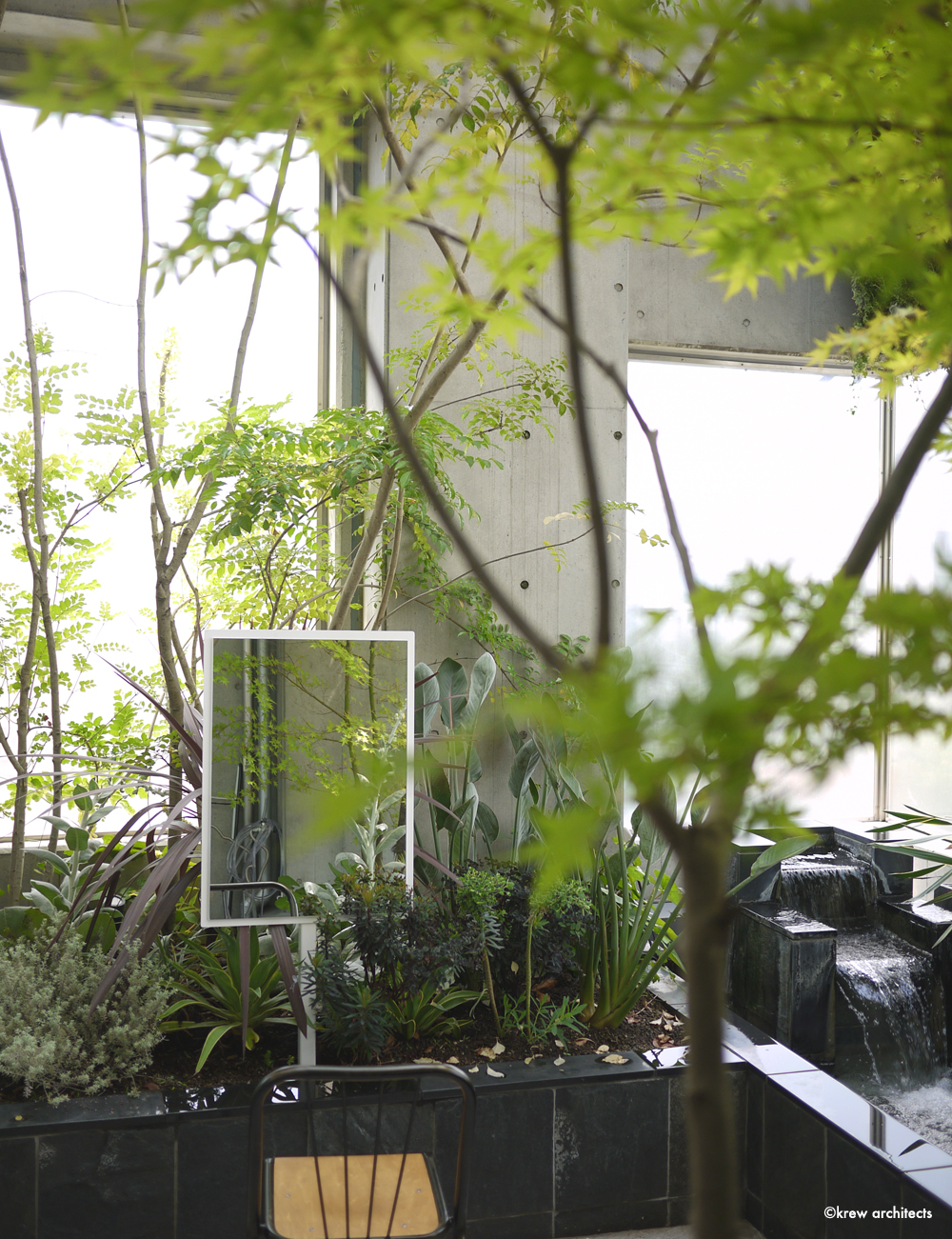 地上6階で庭つきという類い稀なるロケーション。都会のダイナミックな景色と緑の共存を最大限活かすよう計画した。