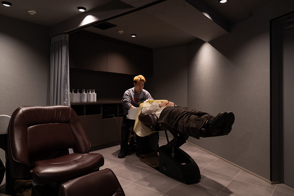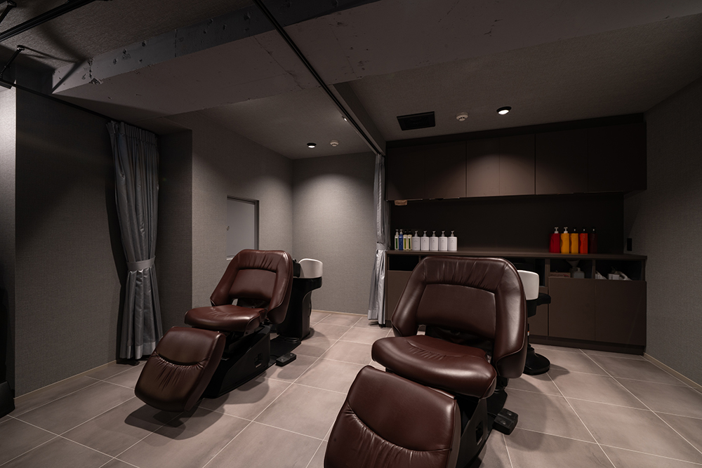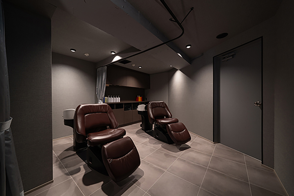 カットスペースとシャンプースペースに仕切りを設け、シャンプー時は髪の毛を洗い流すだけでなく、よりリラックスいただける色合いと照明に気を使った空間にいたしました。